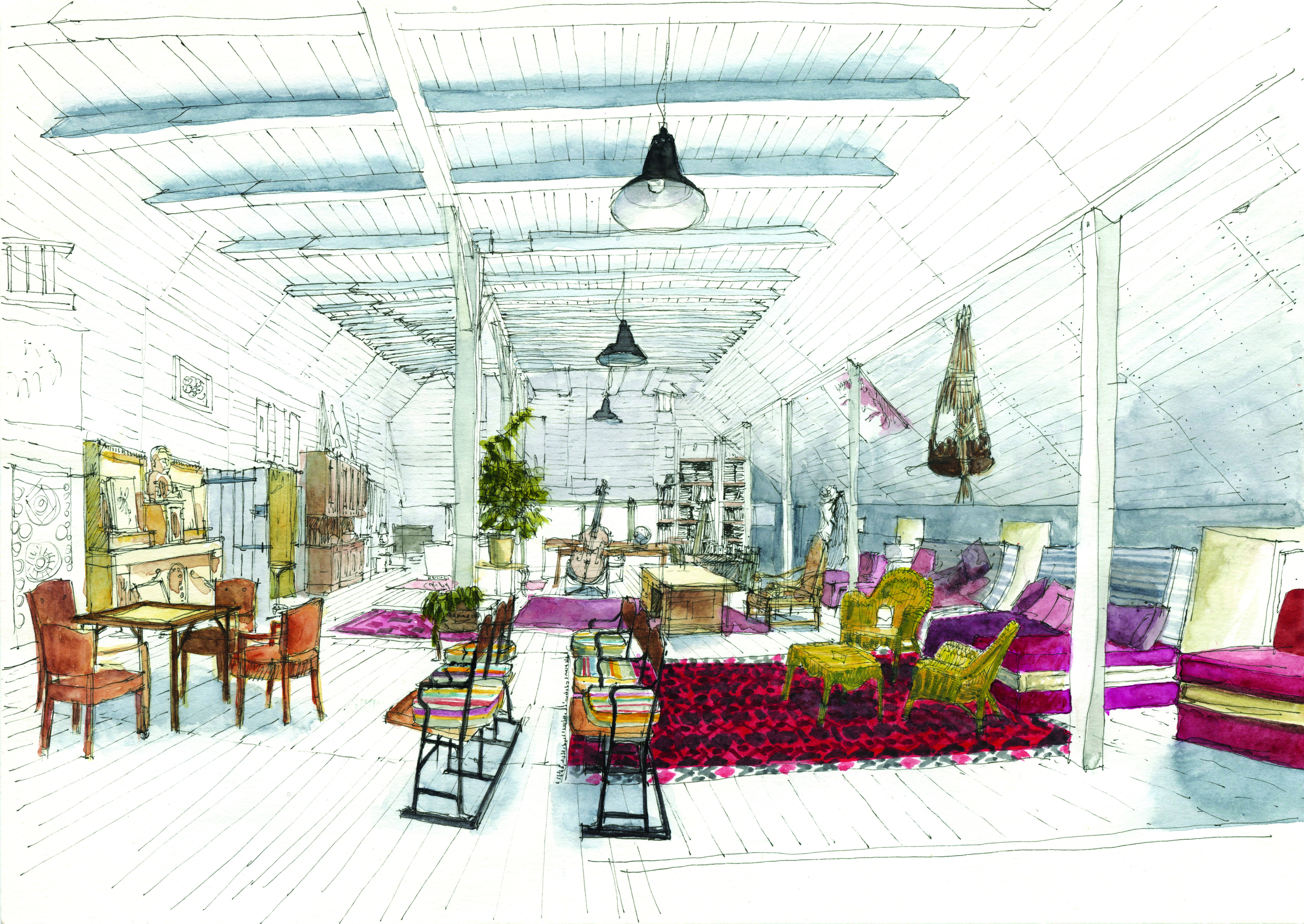Au milieu des œuvres d’artistes amis, d’objets signés ou chinés d’époques et d’inspirations diverses, l’esprit vagabonde. Alors, pourquoi ne pas se mettre à l’écriture derrière un bureau de mercière ? Se laisser aller à la rêverie sur de grands matelas colorés ? Consulter un ouvrage sur le pays ou un magazine de déco dans le coin bibliothèque ? Admirer l’Aubrac confortablement assis dans un fauteuil ? Ou disputer une partie de billard ou de baby foot ?